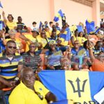 The Barbadian contingent showed up in their aquamarine and yellow, on the field and in the stands.